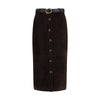 The suede midi Skirt by Self-Portrait blends the rich texture of suede with a tailored silhouette that channels effortless 70s boho flair. The fitted shape enhances the figure with understated elegance, while the front button closure and removable belt add versatility and definition. Finished with functional pockets, it’s a refined yet wearable piece, ideal with a cosy knit for daytime or styled with a blazer and boots for a chic office look.
