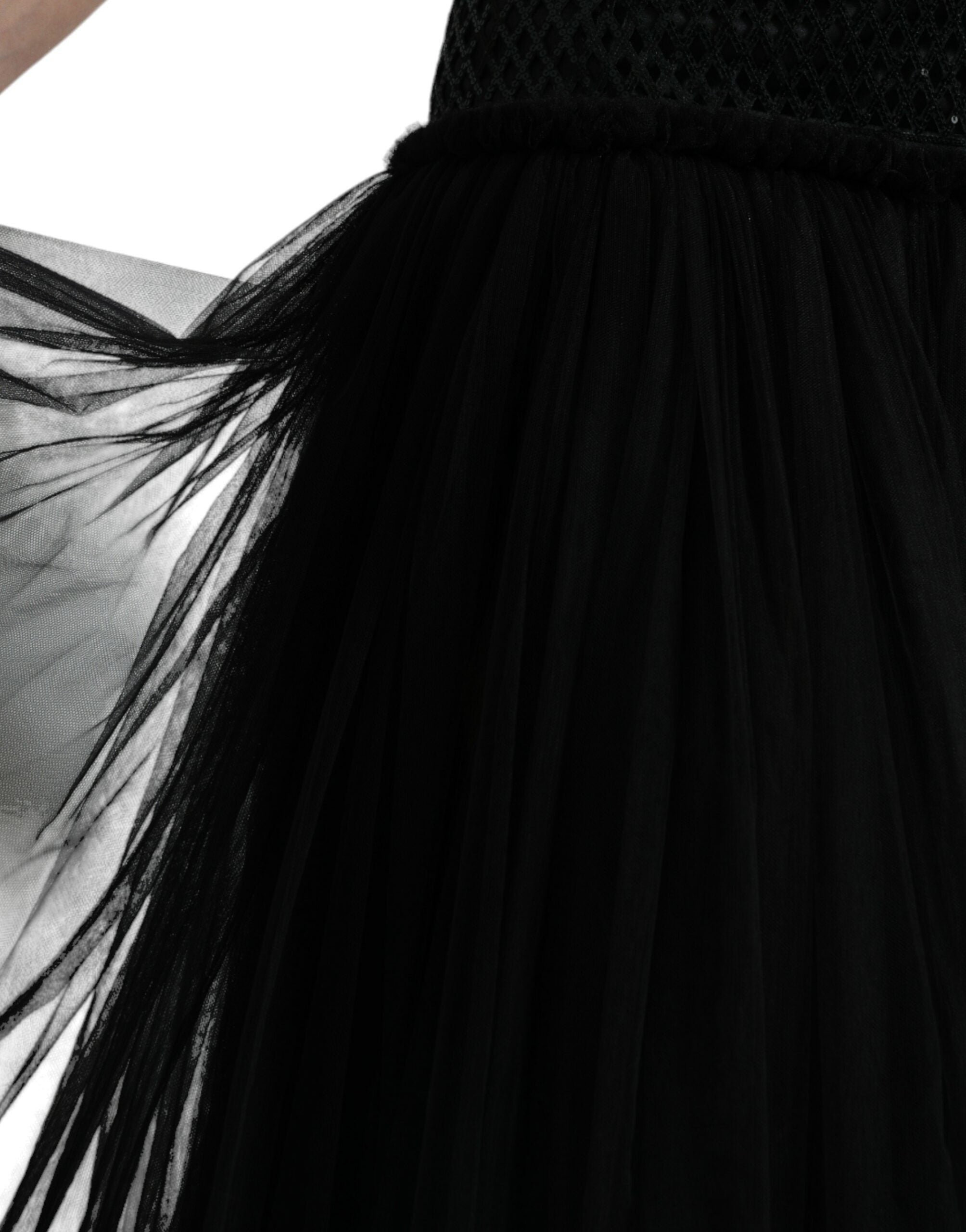 Dolce & Gabbana Black Sequined Sleeveless Mesh Layered Gown Dress