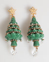 These festive statement earrings are crafted in gold-tone brass and decorated with vibrant green enamel, crystal embellishments, and sparkling star studs. Finished with dangling teardrop crystals for added