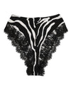 Dolce & Gabbana Black Silk Zebra Print Lace High Waist Underwear