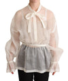 Dolce & Gabbana White Ascot Collar Long Sleeves Blouse Top