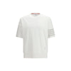 The 4-Bar cotton jersey T-shirt by Thom Browne reflects the brand’s disciplined aesthetic through graphic details and refined proportions. The crew neck creates a clean line, while the elasticated hem adds structure to the silhouette. The 4-Bar motif and the patch applied on the lower left side with the brand name and signature information complete the piece with an iconic and recognizable touch.