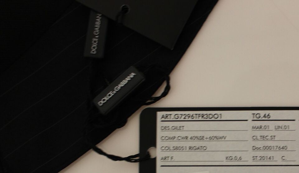 Absolutely stunning, 100% Authentic, brand new with tags Dolce & Gabbana black striped wool and silk blend Dress Vest. This item comes from the MainLine Dolce & Gabbana collection.