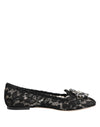 Dolce & Gabbana Black Taormina Lace Crystals Flats Shoes