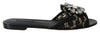 Dolce & Gabbana Black Taormina Lace Slides Crystals Flats Shoes