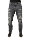 Dolce & Gabbana Dark Gray Tattered Cotton Loose Denim Jeans