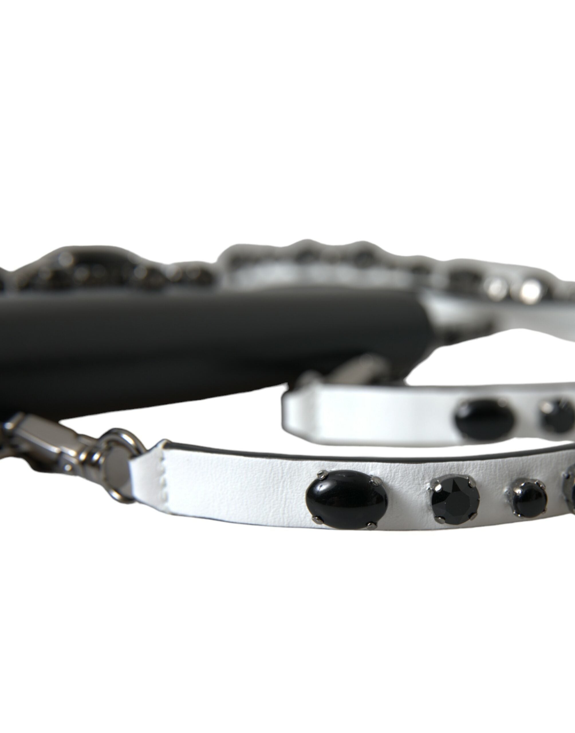 Dolce & Gabbana Black White Leather Crystal Embellished Cardholder Wallet