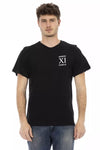 Elevate your wardrobe with the bold flair of Bikkembergs. This striking T-shirt radiates confidence, featuring a captivating front print that showcases your trendsetting style. Crafted from premium cotton, it promises both comfort and durability. Make a statement with this sleek black tee, a testament to impeccable taste and the spirit of high-fashion. Ideal for those who dare to stand out.