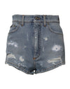 Dolce & Gabbana Blue Tattered Denim Cotton Hot Pants Shorts