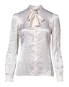 Dolce & Gabbana White Ascot Collar Long Sleeve Blouse Top