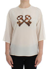 Dolce & Gabbana White Sequined Key Silk Blouse T-shirt Top