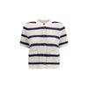 The striped mesh Cardigan by Brunello Cucinelli is a lightweight and elegant piece designed for effortless sophistication. Featuring short sleeves, it is detailed with a striped pattern, front button closure, front pockets, and a ribbed hem, creating a refined and versatile silhouette.