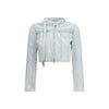 The De-Saphix-Fsi1 Jacket by Diesel, unveiled during the SS26 Runway Show, fuses biker codes with a sleek racer attitude in a slim, cropped silhouette. The round collar extends into a long wraparound strap fastened with a logo button and finished with a metal D detail, adding a distinctive signature touch. Crafted from innovative satin denim in a cotton and hemp blend, the fabric features a luminous surface enriched with ultra-fine metallic threads. Laser treatments create bold contrasts between matte and glossy areas, while a hand-sprayed coating and sulfur-based pigments generate sophisticated grey tones with a unique worn effect. A convex D-logo button encased in transparent resin adds a jewel-like accent, complemented by an embossed leather back label. Complete with a D-logo zip closure, welt chest pocket, and lyocell lining, this jacket embodies Diesel’s experimental craftsmanship and contemporary edge.
