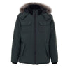 Moose Knuckles Green Technical Fabric Padded Jacket. Front zip fastening, two side pockets with flaps and zips, padded interior, hood with adjustable and removable fur insert. Logo patch on the sleeve.