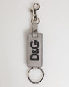 Dolce & Gabbana Gray Leather Logo Metal Ring Keychain Holder Men Keyring