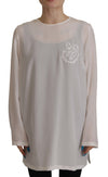 Dolce & Gabbana White Silk DG Logo Embroidered Long Sleeves Blouse