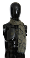 GF Ferre Green Wool Viscose Foulard Patterned Branded Scarf