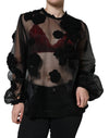 Dolce & Gabbana Black Nylon Mesh Transparent Floral Blouse