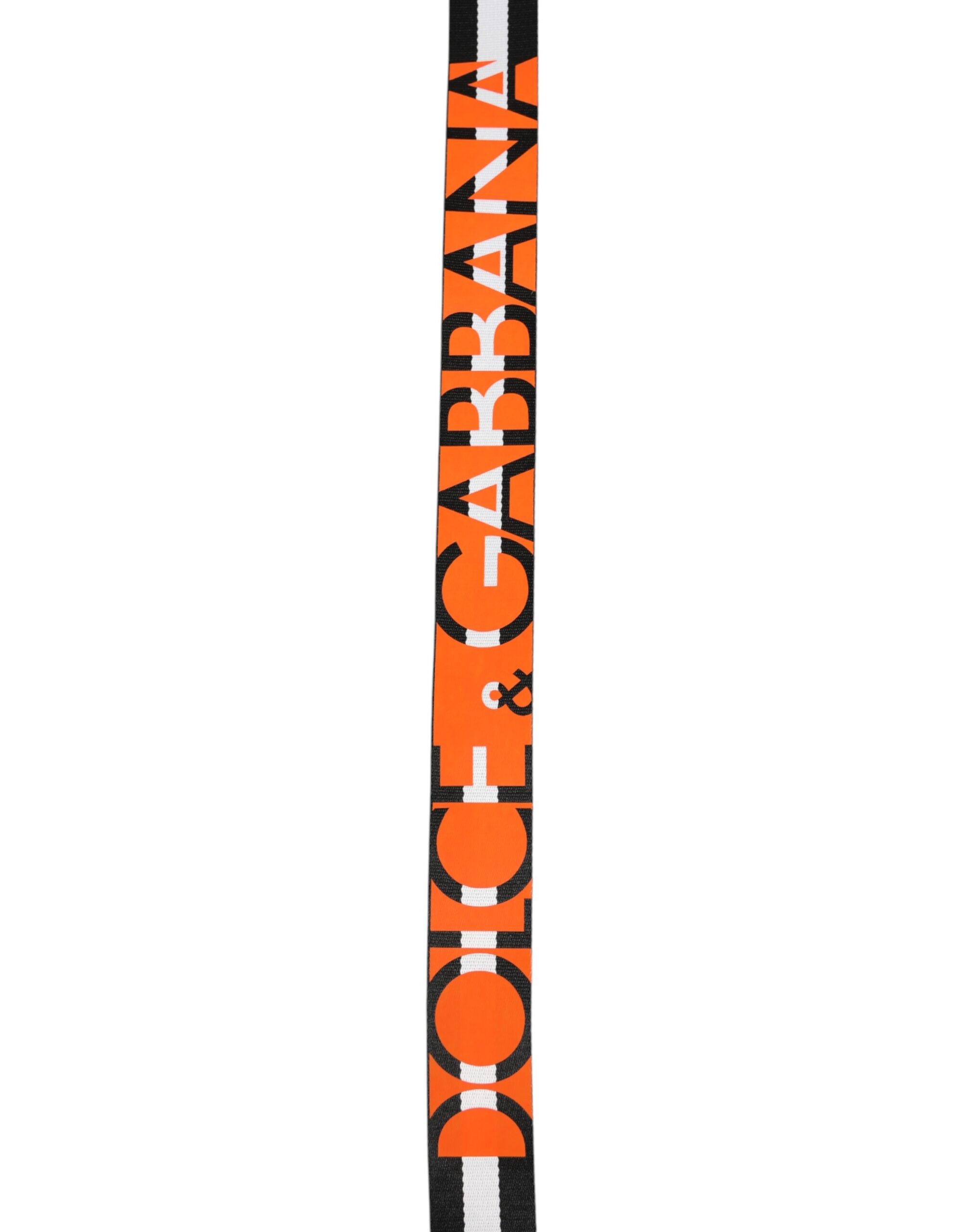 Dolce & Gabbana Black White Striped Logo Metal Buckle Belt
