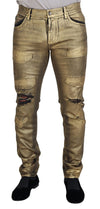Dolce & Gabbana Gold Cotton Tattered Skinny Men Denim Jeans