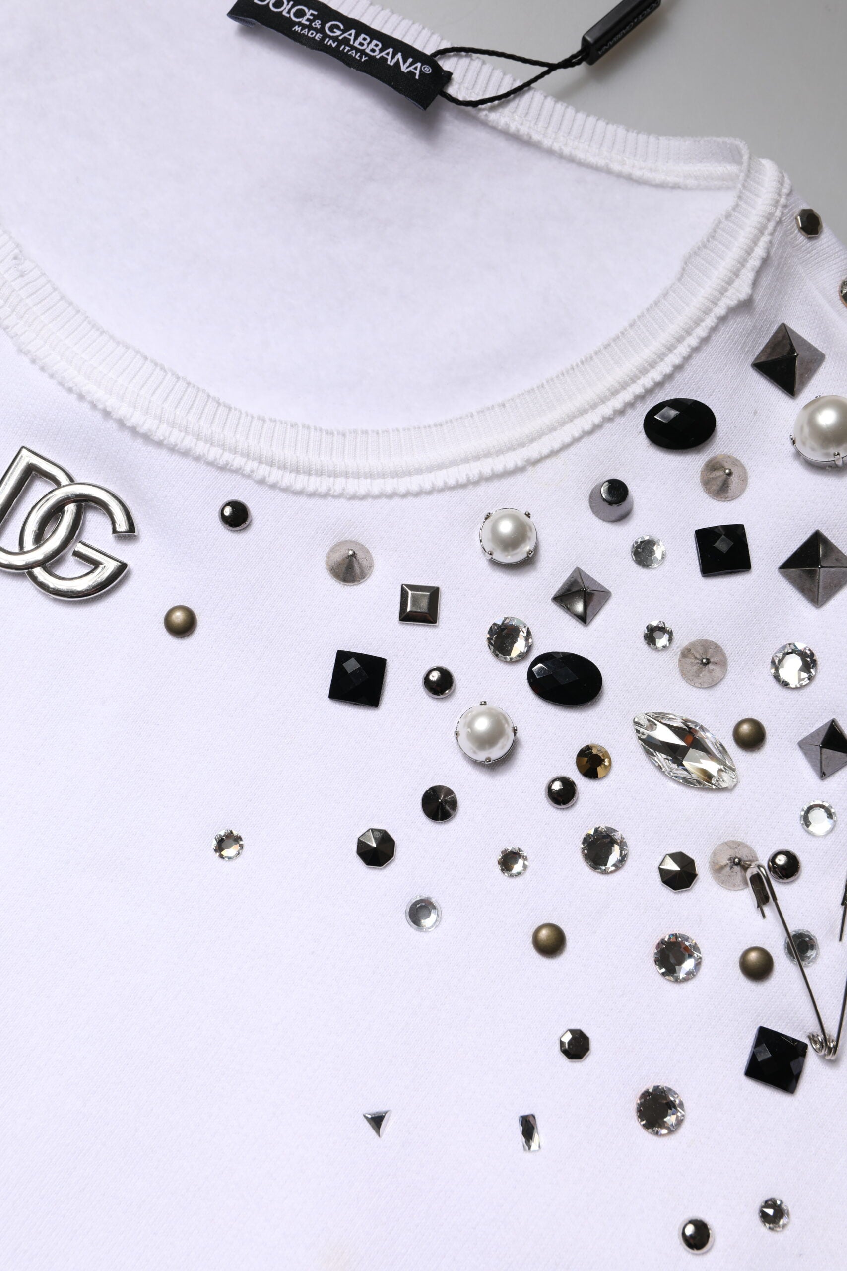 Dolce & Gabbana White Embellished Long Sleeve Cropped Sweater