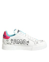 Dolce & Gabbana White Leather Graffiti Low Top Sneakers Shoes