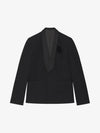 Experience the epitome of tailored sophistication with GIVENCHY’s Satin Chale Lapel Jacket. This immaculately designed piece exudes a sense of daring elegance, ideal for the fashion-forward individual seeking to make a statement at any high-profile event. Elevate your wardrobe with the bold charm of Italian craftsmanship and the timeless allure of black satin.