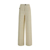 The cotton tweed check Pants by Gucci combine classic elegance and modernity with their sophisticated style. The ivory cotton tweed fabric with a check pattern gives a refined and versatile look, perfect for any occasion. The metal GG Interlocking GG button, an iconic symbol of the fashion house, adds a distinctive touch. The model is lined to ensure comfort and a perfect fit. The front pockets and button and zipper closure complete the design, making these pants a must-have for those seeking a chic and contemporary look.