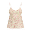 The Madeline Magnolia Top by Kristina Ti embodies a fresh, refined femininity with a contemporary appeal. Crafted from floral-print ramie, it features a V-neckline and adjustable thin shoulder straps that enhance the silhouette with lightness. Geometric cut-outs enriched with passementerie inserts add a refined decorative detail, giving the top a delicate yet urban elegance.