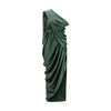 The draped midi Dress by Vivienne Westwood embodies elegance with a dramatic and sophisticated touch. Crafted from green satin fabric, it features a sleeveless design with a V-neckline that enhances the silhouette. The fluid draping across the neckline and skirt creates movement and dimension, while the asymmetrical hem adds dynamic character. A feminine and distinctive piece, perfect for special occasions.