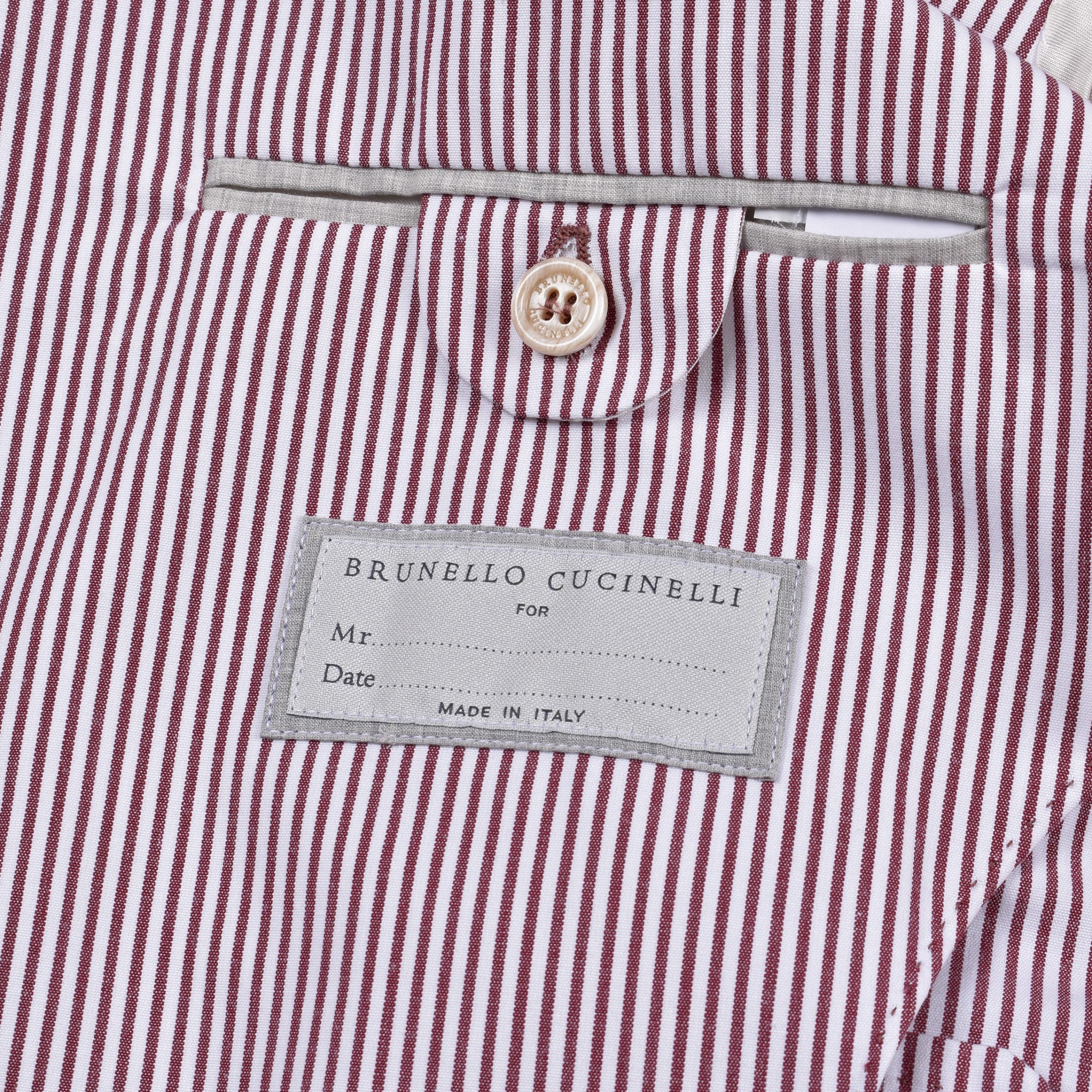 Elevate your wardrobe with the unparalleled sophistication of BRUNELLO CUCINELLI. This men’s deconstructed jacket, woven with care in Italy, merges comfort with high-end style, featuring a striking burgundy and white color scheme. Its luxurious blend of cotton and elastane ensures both a perfect fit and enduring quality. New with tags, this piece is a testament to impeccable craftsmanship and contemporary elegance — a true collector’s item for the fashion-forward gentleman.
