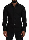 Dolce & Gabbana Black Cotton Collared Long Sleeve GOLD Shirt