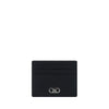 Calfskin Card Holder by Ferragamo, card slots on front and back, iconic Gancini plaque applied in contrast on front, two-tone design.